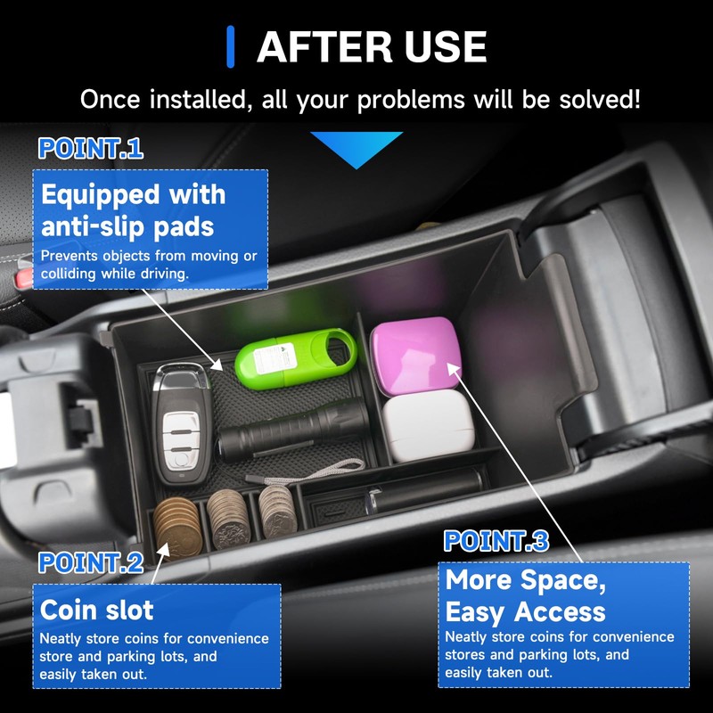 - Secure Storage: Add addtional storage place for you to keep your important items in console interior place.