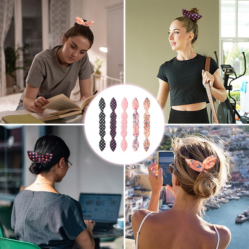 - 【Paket beinhaltet】 Sie erhalten 5 Stück Haarknotenmacher in 2 Stilen, einschließlich Tupfen und Blumenform. Jeder mit einer Länge von 33 cm, und die Metallstütze in jedem Duttformer sichert Ihr Haar effektiv an Ort und Stelle und sorgt für einen stabilen und stilvollen Look.