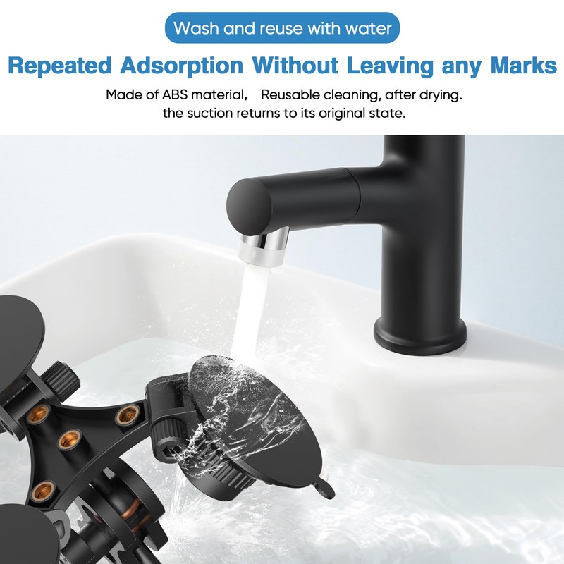 • MULTI ANGLE ROTATION The triangular suction cup holder design allows for multi angle rotation, and even on curved surfaces, it can be firmly fixed and adjusted to the desired position. Before use, please remove the protective film of the suction cup and stick it to a smooth surface to obtain the strongest suction force