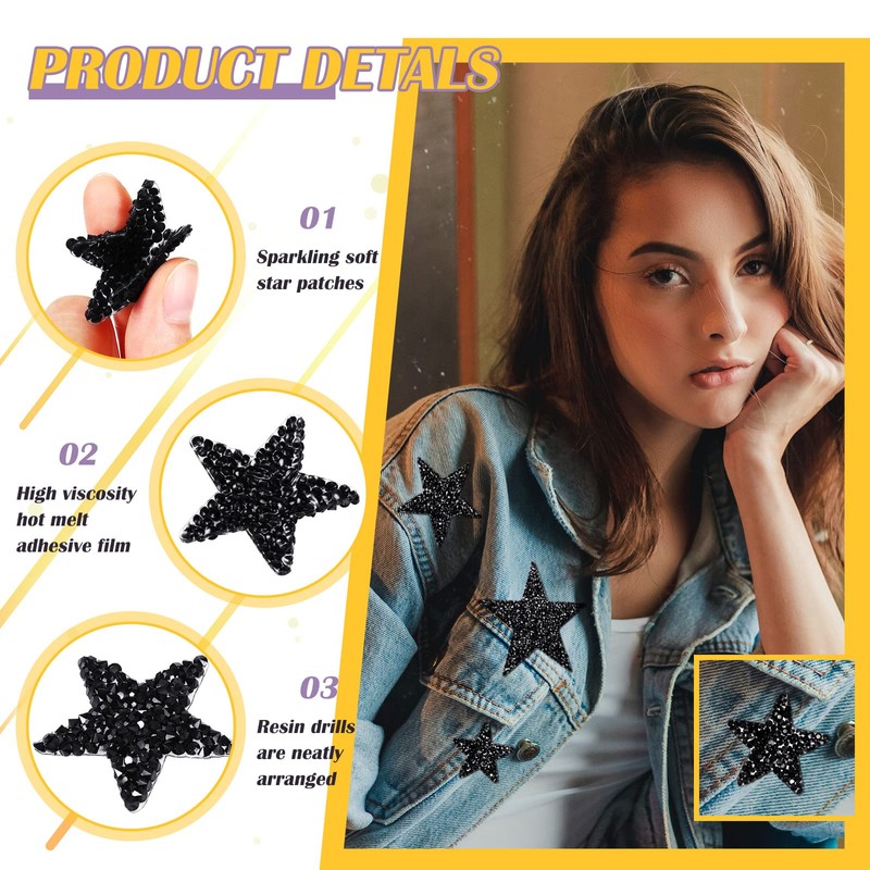 - Adhesive and Serviceable: these rhinestones star patches are mainly made of solid resin diamonds, sturdy and serviceable, with hot adhesive on the back, stable and not easy to fall off, they can also show a shiny effect under light, well suitable for clothing decoration, making your clothes shiny and characteristic