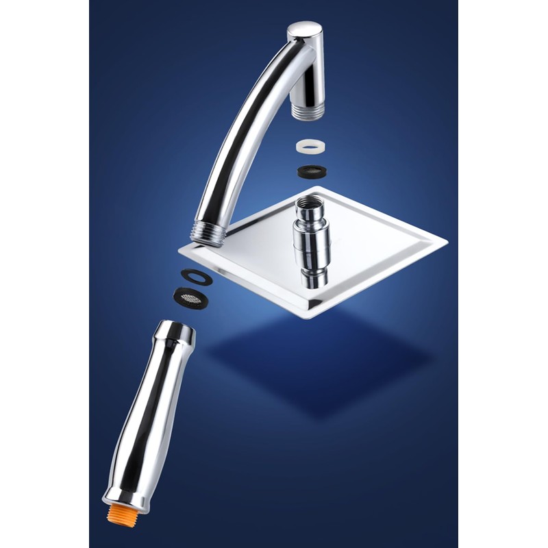 - High pressure shower head: This powerful shower head has air pressure technology for increased water pressure. The intense and powerful water jet ensures a full-surface rain shower experience. Get rid of all the problems of conventional shower heads and enjoy a healthy rain shower.