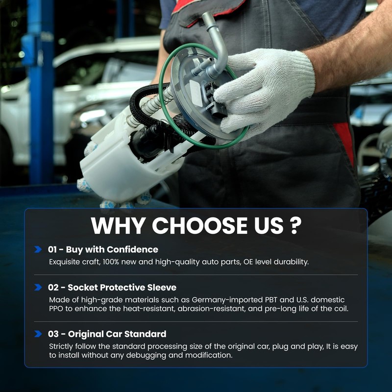 - [ OE Standard ] - Our Automotive Electric Fuel Pump Assembly are designed to meet or exceed OE specifications in quality, fit and function. Made with all new materials under rigorous quality controlled manufacturing and testing procedures to ensure quiet operation, unmatched performance, and long-lasting durability.