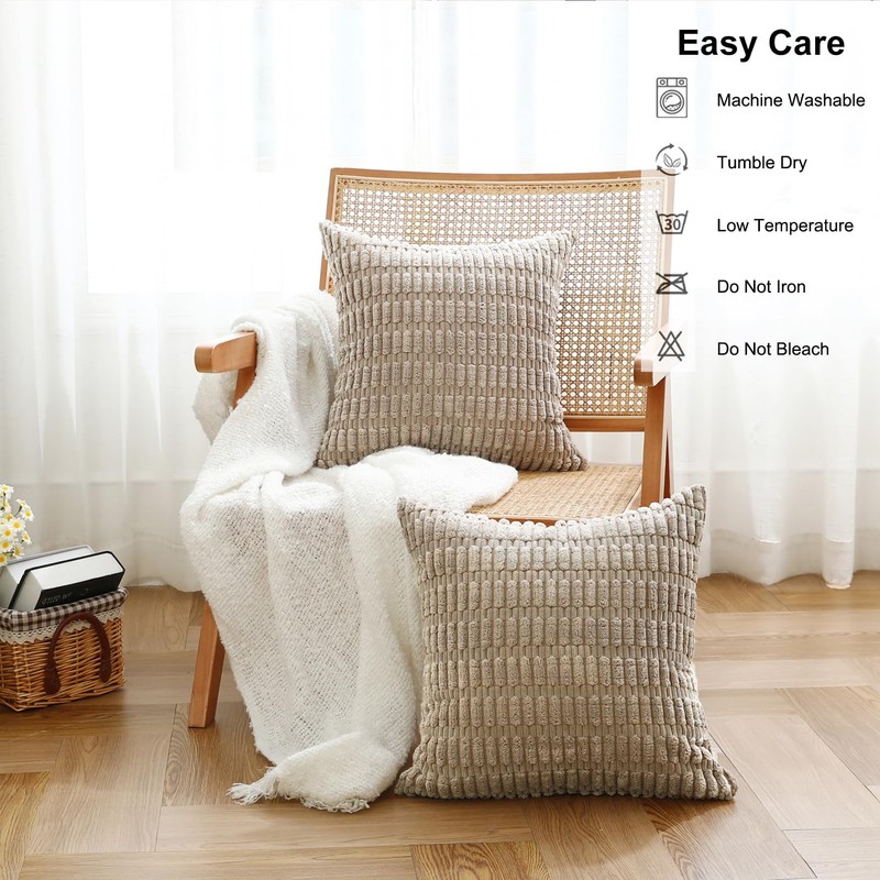 - Hassle-Free Maintenance: These neutral neutral tan throw pillows make life easier - they're machine washable (cold water) and tumble dry safe (low heat). With pre-shrunk fabric that maintains shape and texture after dozens of washes, these cushion covers require no ironing.