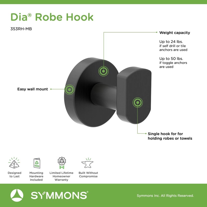 Symmons 353RH-MB Dia Robe Hook, Matte Black