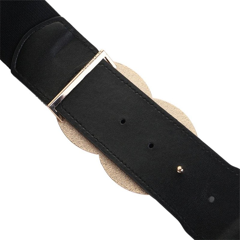 - Waist belt design: gold-plated two round metal buckle on the front, high-quality cowhide leather on both sides, elastic band on the back and a layer of cowhide leather on the elastic band. This belt looks stylish and elegant.