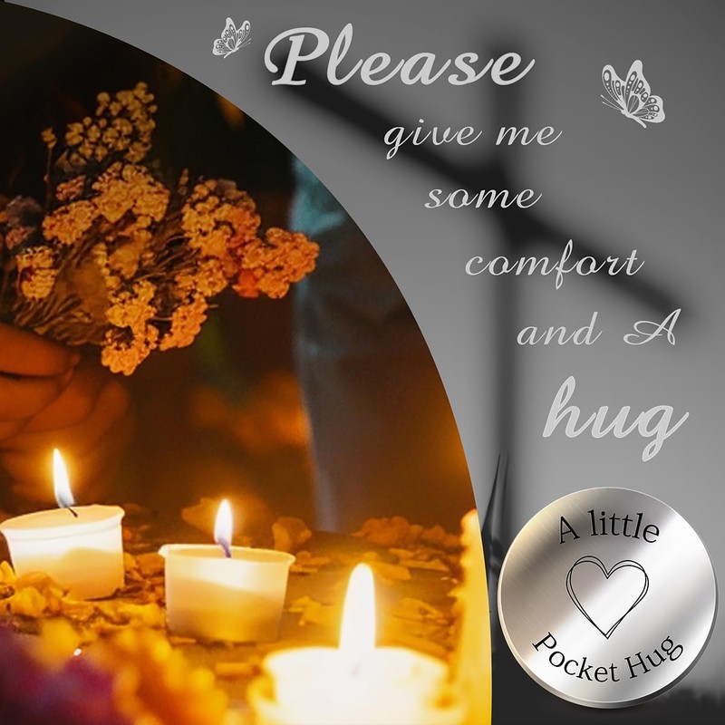 - Souvenir Gift set:You will receive a high quality round stainless steel pocket hug token (3cm/1.18inch)and a beautiful PU leather bag keychain to hold thet oken,Exquisite workmanship, easy to carry, you can carry in your pocket, purse or backpack.Condolence gifts, condolence items, sympathy gifts for lost mothers, fathers, loved ones.