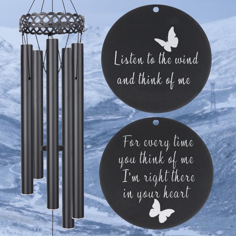 - In Memory of Loved One Wind Chimes - The wind chimes is made of 5 high-quality aluminum tubes in black finish. The tubes are corrosion-resistant and recycled materials that can withstand most kinds of outdoor bad weather and maintain lasting beauty outdoors, eco-friendly to the environment and body.