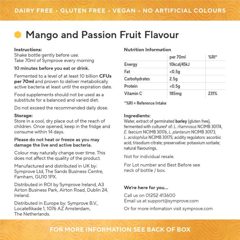 Symprove Mango & Passionfruit 1 Week Pack Daily Essential Gut Health Supplement, Probiotic Drink with Live Bacteria, Vegan - 1x500ml