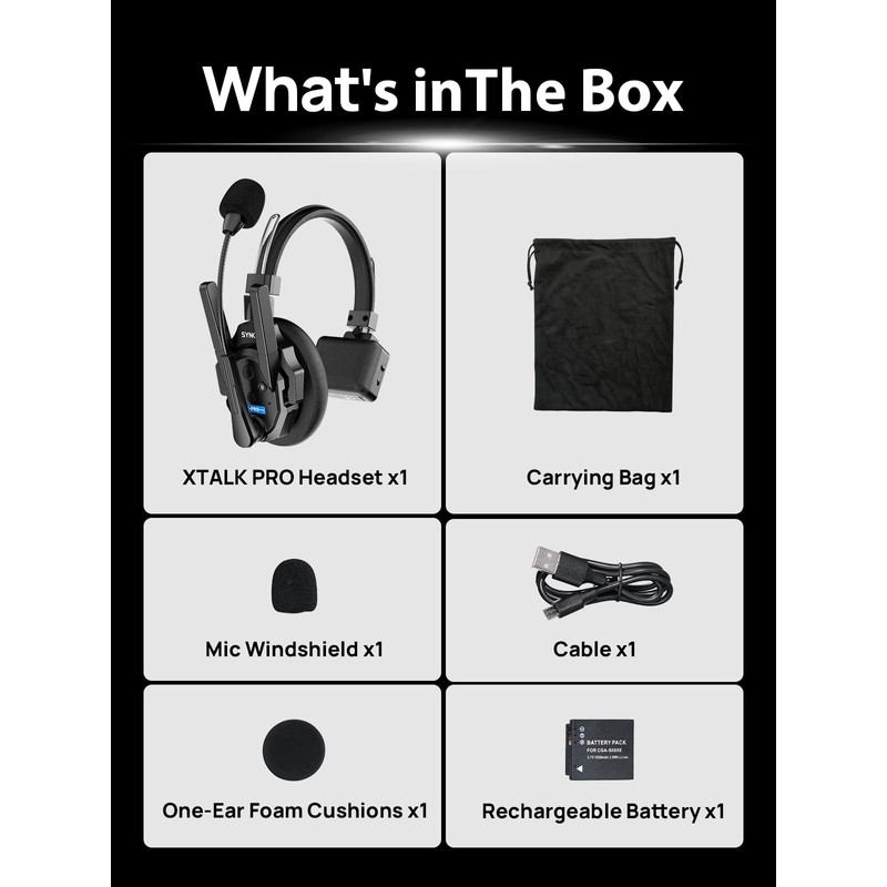 SYNCO XTALK XPRO Wireless Intercom Headset, 2.4GHz Full Duplex Wireless Communication Headset 500m/1640ft with Noise Reduction, Xtalk-Xpro1-Wireless-Headset-Intercom(Single)