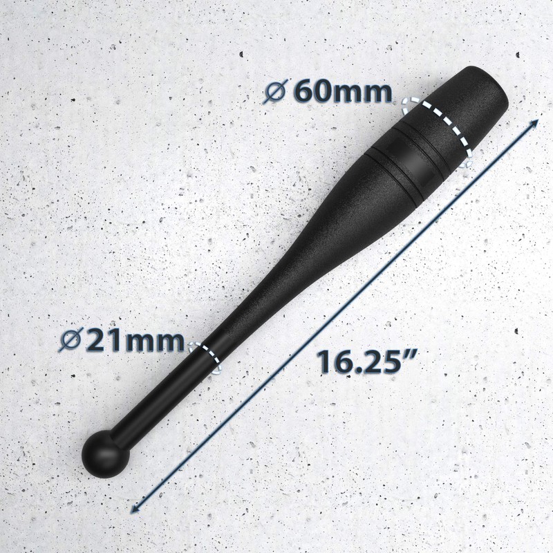 - ★ WHAT’S IN THE PACKAGE ★ – Synergee Indian Clubs are sold in pairs, are made from steel, and finished with a black matte coat. This pair contains (2) 1 lb Indian Clubs, measuring 16.5” long and each has a 21 mm diameter handle and 60 mm at the thickest part of the weighted end.