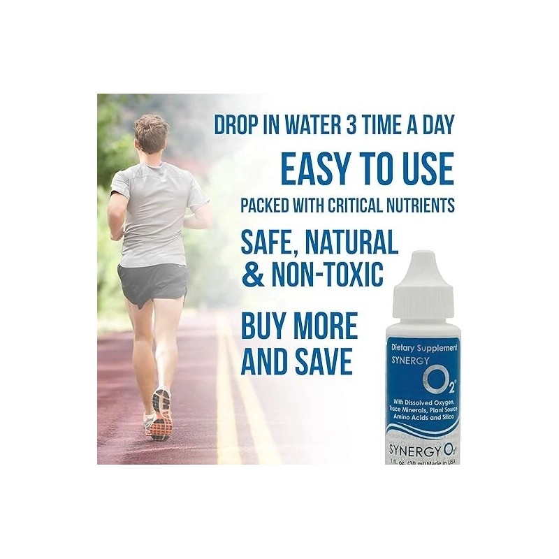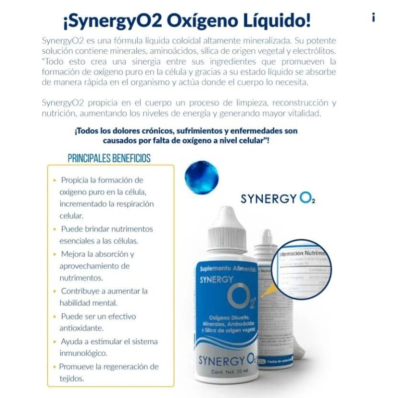 About this item Oxygen is a vital element for the human body, yet many of us could benefit from a an O2 boost, which is why we have developed the premium Synergy O2 dietary supplement, simple drops of liquid oxygen that can have a great impact on your organism.