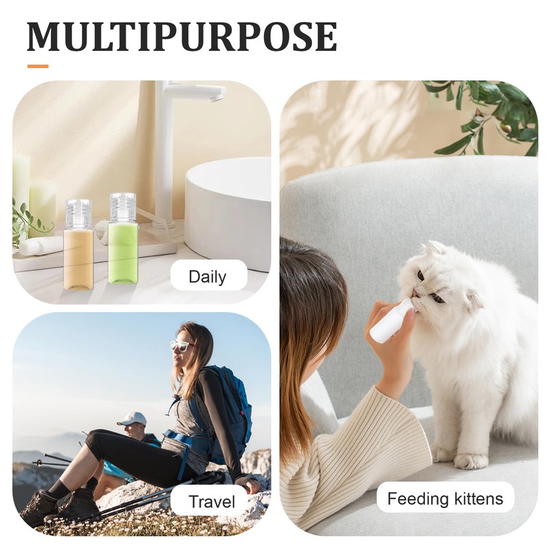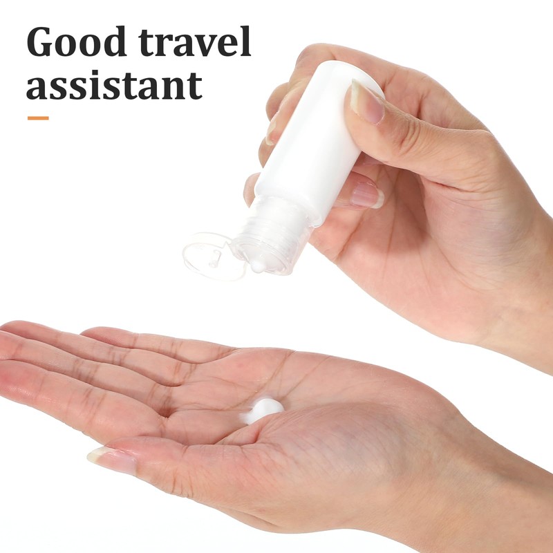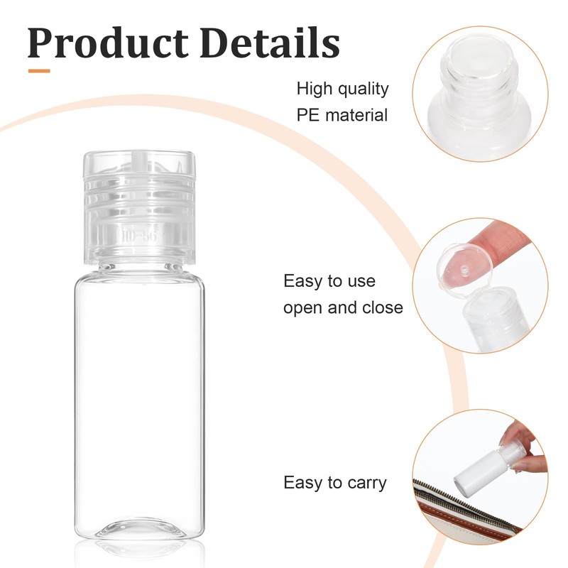 - Portable Travel Bottles: The unique flip-top design allows you to easily dispense your favorite products, whether it's shampoo, massage oil, or liquid lotion. The bottles are sturdy enough to stand upright, yet flexible enough to be squeezed with ease