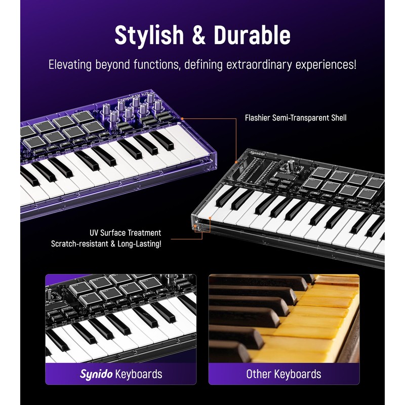 - ✔️[Cool & Durable Design] The sleek, semi-transparent case with a quality scratch-resistant UV coating gives it a premium look and long-lasting protection. The keys also feature a durable coating, keeping them looking sleek and fresh for extended play. Stylish and tough, it’s built to handle your creative journey.