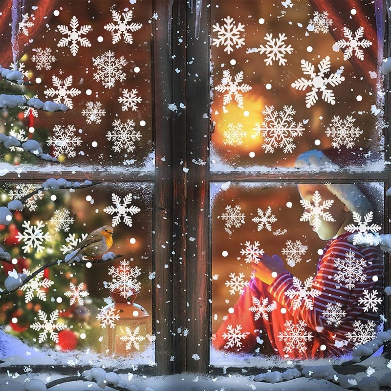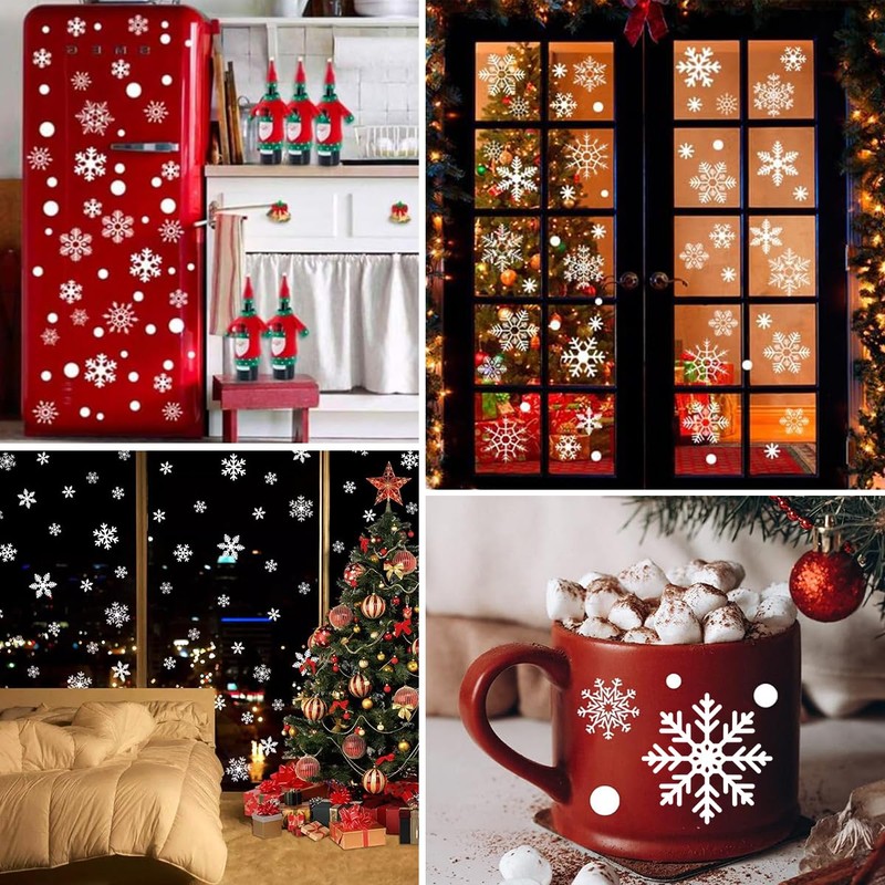 • Decoración de Temporada: El juego de pegatinas PVC estáticas de copos de nieve es perfecto para crear un ambiente festival romántico y cálido durante Navidad y Año Nuevo