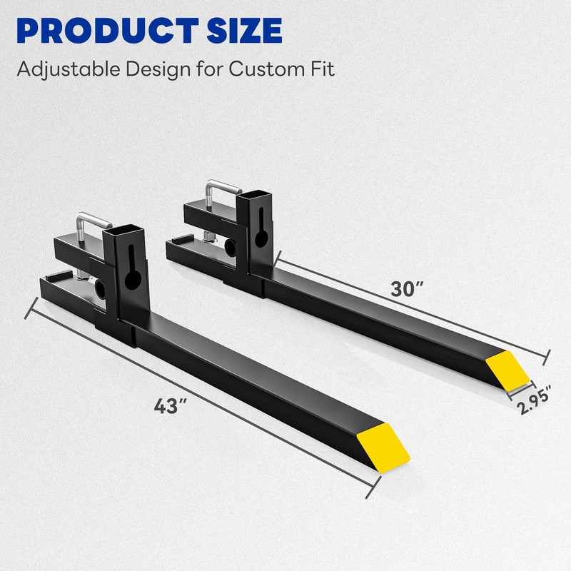 - Multi-Scenario Load Handling: From firewood to fence posts, these tractor bucket forks excel in versatility. The rust-resistant powder-coated finish prevents corrosion, while the 43" design tackles brush clearing, warehouse logistics, and more with ease.