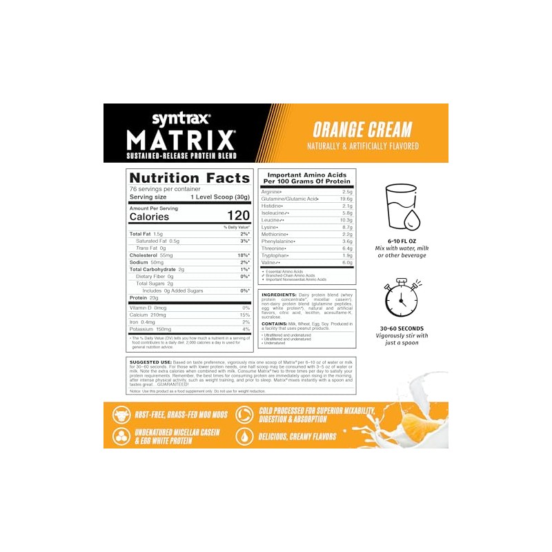 Syntrax Syntrax Nutrition Matrix, Sustained-Release Protein Blend, Orange Cream, 5 lb
