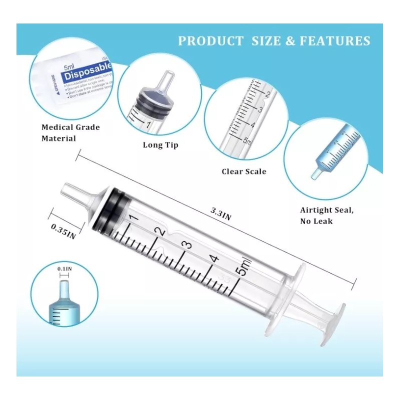 - PACKAGE INCLUDED: 24 pack 10ml plastic syringes with measurement, each packaged syringe comes with a tip cap. Enough quantity to meet daily use or replacement.