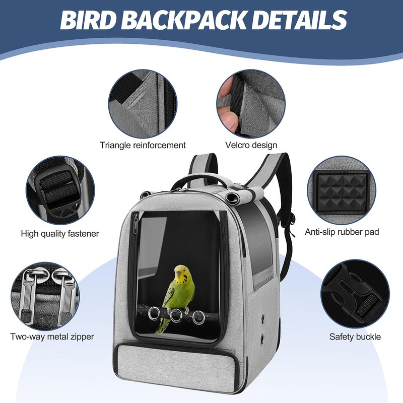 - [BREATHABLE AND PERSPECTIVE DESIGN]:The Breathe and Perspective Bird Backpack is perfect for travel and hiking,as it is ventilated on three sides and has a transparent window for a great view of the scenery.The backpack is also breathable and has a comfortable fit,so your bird will be able to enjoy the trip with you.