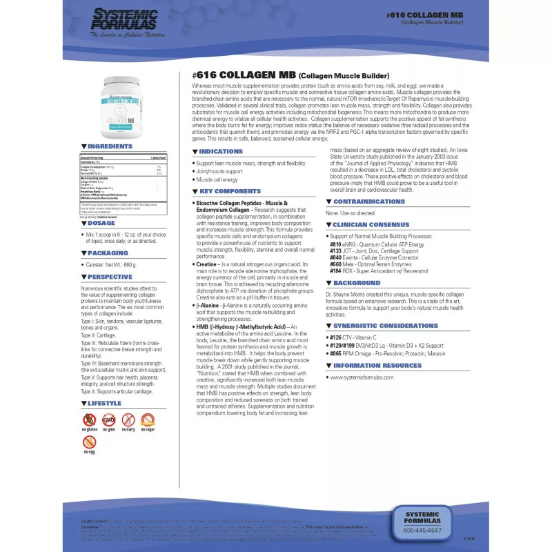 Systemic Formulas Inc Bio Basic #616 Collagen MB, Collagen Muscle Builder, New