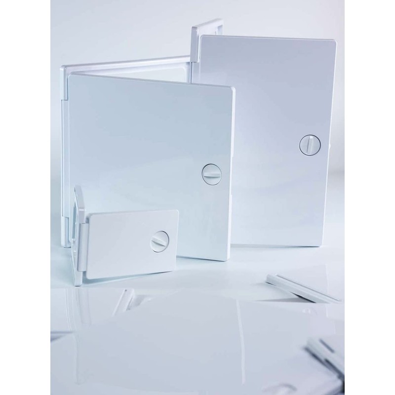 - Designed for wall surface mounting. No through hole assembly is required, which allows the access door to be larger than the mounting hole. Mounting with glue or screws (not included)