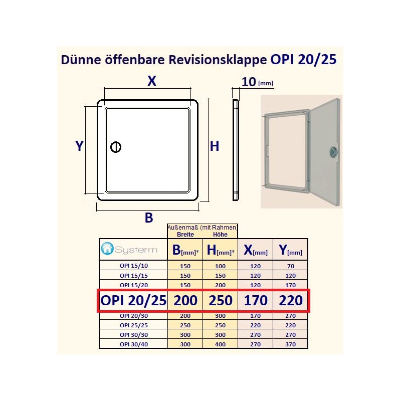 SYSTERM Universal Inspection Lid External Dimensions 20 x 25 cm Open Thin Inspection Lid Basic Opening Inspection Flap ABS Plastic White (20x25 - OPI 20/25)
