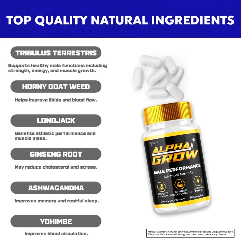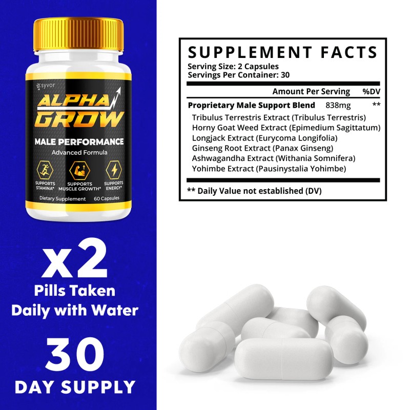 Syvor Alpha Grow Pills for Men Max Strength Alpha Grow Formula Supplement 300 Capsules