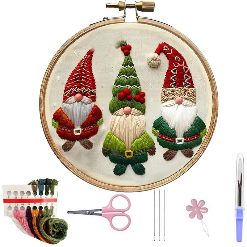 - 2.christmas embroidery patterns: embroidery starter kit Perfect for a night of embroidery or for those who love a winter snowy landscape! This Winter Snowy christmas ornament embroidery kit makes it easy to create your own Christmas party. This clever embroidery kit for beginners ! All of our christmas punch needle kit have detailed instructions, photos and illustrations along with a comprehensive stitch guide to help you along the way.