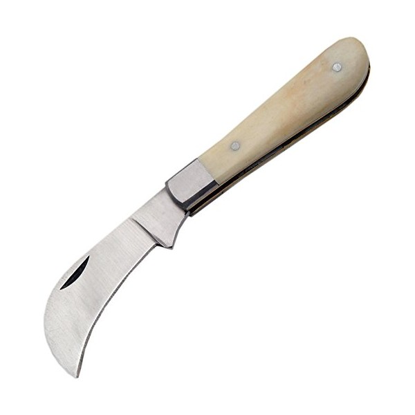 The Bone Pruning Knife is 3.5" in closed length. It has a stainless steel pruning blade. The handle is bone with a steel bolster.