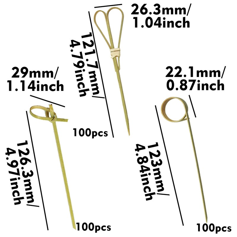 SZCXDKJ 300 Pieces Disposable Cocktail Sticks Japaneses Style Bamboo Knotted Skewers Food Picks Toothpicks with Twisted Ends Canape Sticks for Nibbles Sandwich Appetisers, 12cm (4.7 inches)
