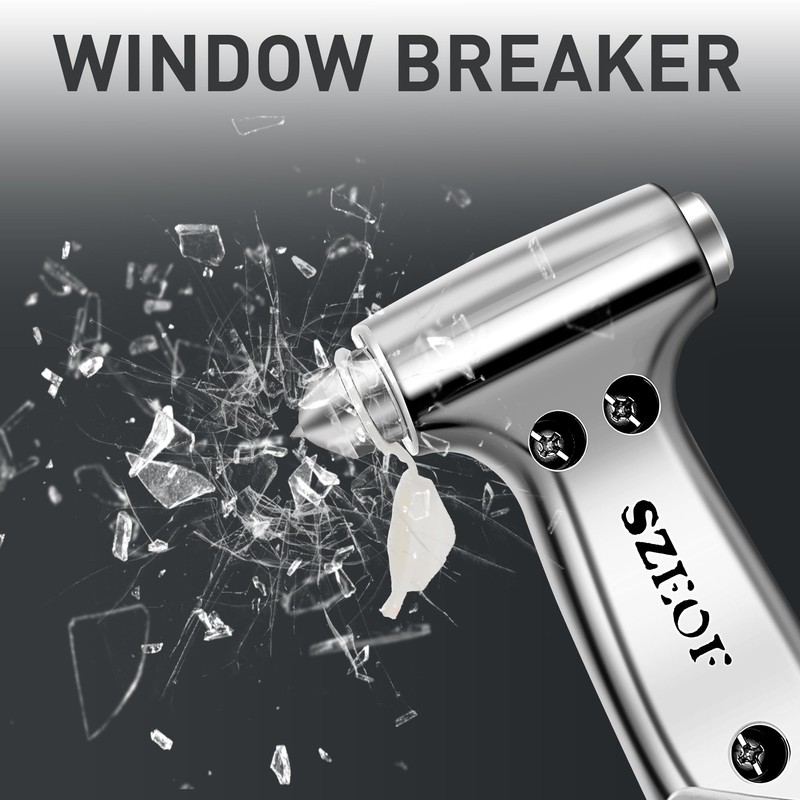 SZEOF - Martillo de seguridad, herramienta multifuncional de escape de coche con cortador de cinturón de seguridad y interruptor de ventana, martillo de escape de emergencia, plata metálica, 1 unidad