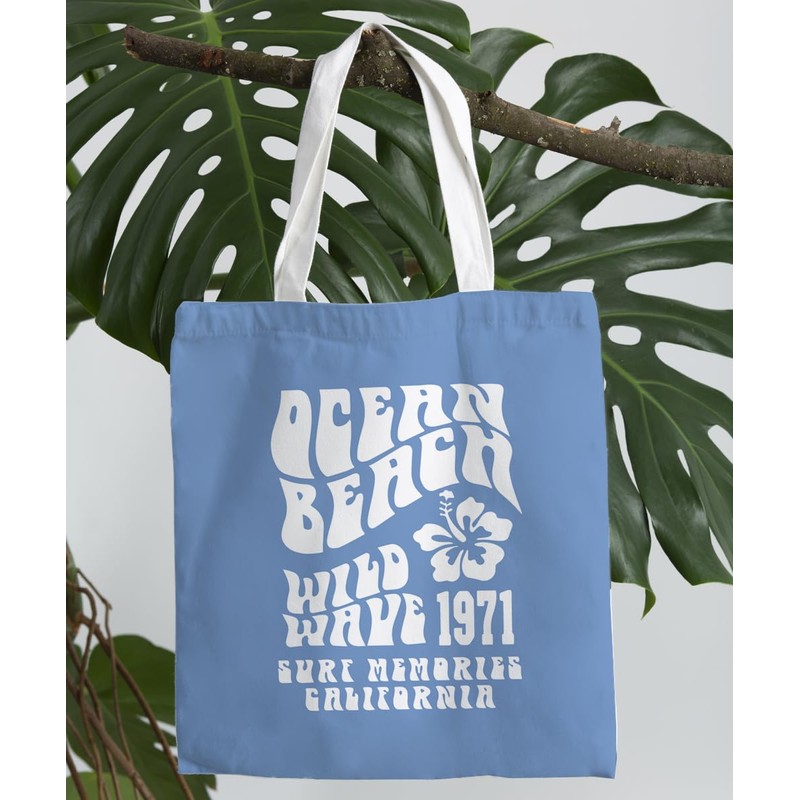 SZERE Blue Beach Preppy Canvas Tote Bag for Women, Preppy Tote Bag, Aesthetic Tote Bag, Summer Tote Bag,Ocean Beach Wild Wave 1971 Surfing memory California, Trendy Gifts for Women Teens Teen Girls