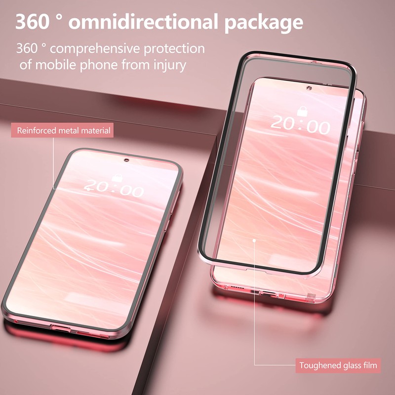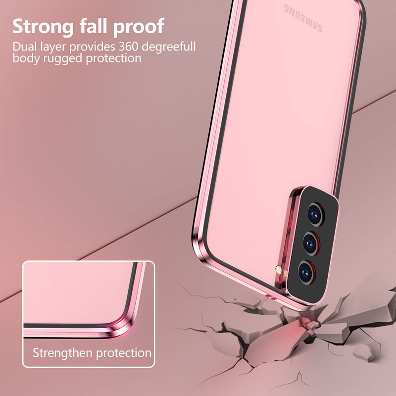 - 360 Full Body Protection This Samsung Galaxy S22 case is made of aluminum alloy and tempered glass with a padded inner layer and designed lens protector. 360 degree double sided clear tempered glass, can perfectly protect your phone from drops, bumps, bumps, stains and scratches. At the same time, the double-sided tempered glass with high hardness is itself not prone to scratches, dirt-repellent and durable.
