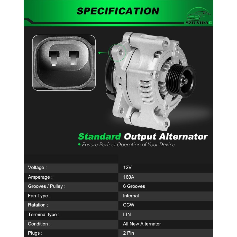 • Durable and Reliable: SZKAIDAG Alternator is Built With High-Quality Components, Ensuring Exceptional Durability and Reliability. It Can Withstand Tough Conditions, Reducing Maintenance and Providing a Consistent Power Supply. Choose SZKAIDAG Alternator for a Reliable and Long-Lasting Performance