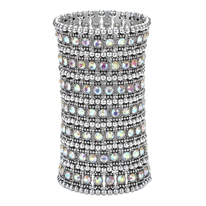 Szxc Womens Ballroom Rhinestone Stretch Cuff Bracelets Fit Wrist Circumference From 7" to 7.8" - Lead & Nickle Free