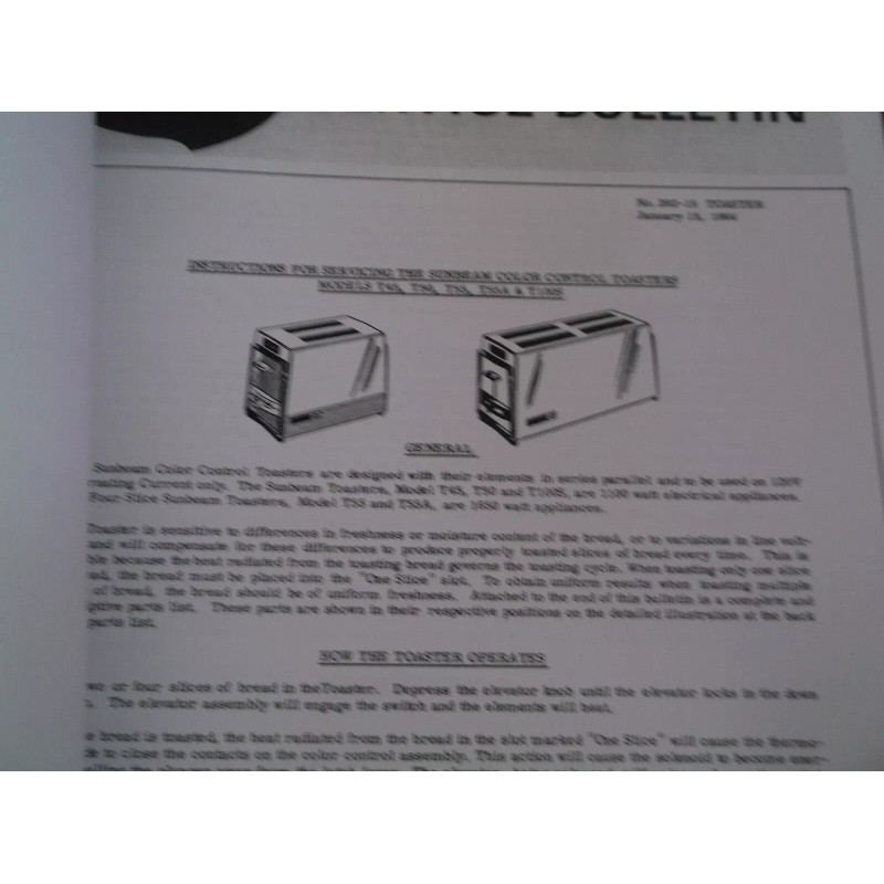 T-35 Sunbeam Radiant Control Toaster Manual, schematics, parts list, disassembly