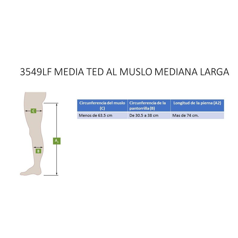 Thigh Length;Size: Medium, Long;Thigh Circumference:less than 25 (63.5 cm);Calf Circumference: 12 - 15 (30.5 - 38 cm);Leg Length:greater than 33 (84 cm)