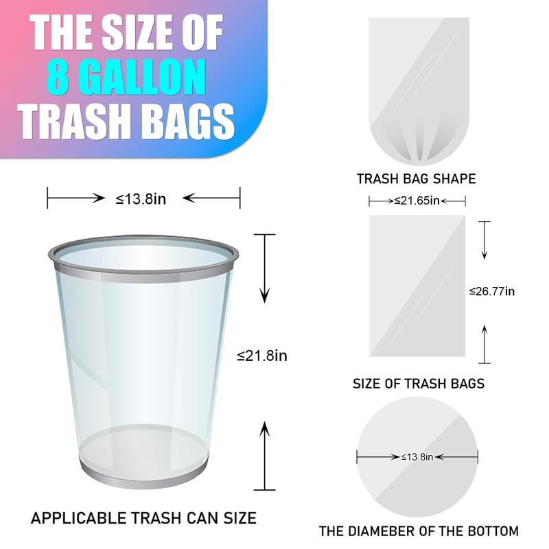 - 【Versatile Usage】Handle daily household trash needs with our unscented 8 gallon garbage bags. Suitable as office, bedroom, kitchen, and bathroom garbage bags. Great medium trash can liners to meet your daily cleaning needs.