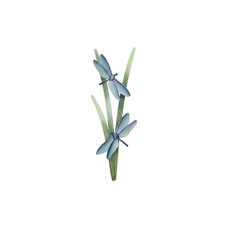 Hand made cattail reeds with a pair of dragonflies, metal wall art. All hand painted.