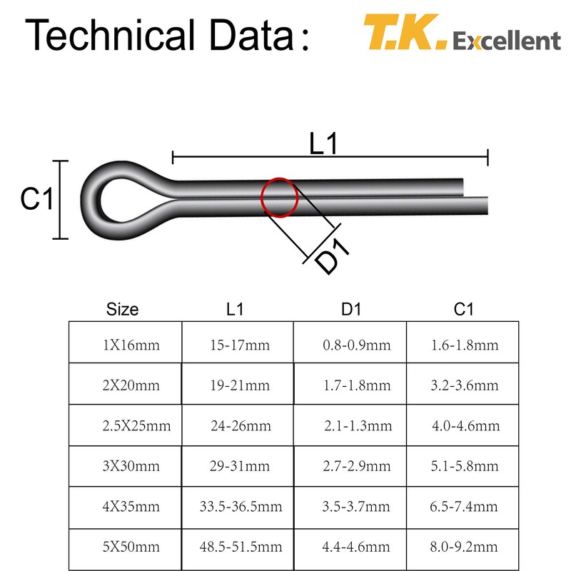 T.K.Excellent 304 Stainless Steel Cotter Pin Assortment Set Value Kit,230 Pcs