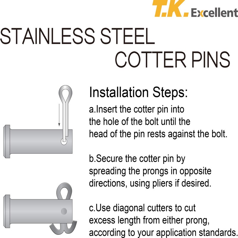 Cotter pins are wire formed pins with two prongs that separate during installation.