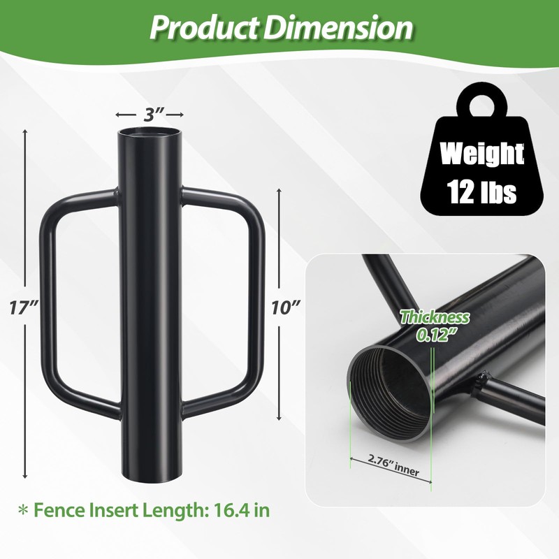 - Heavy-Duty Construction for Max. Efficiency: 12 lb for 17 inches—YOHSUGO post driver with handles is built to last and help fence posts penetrate the ground with minimal effort.
