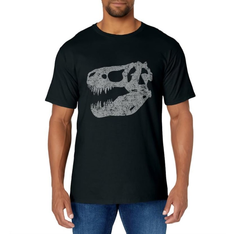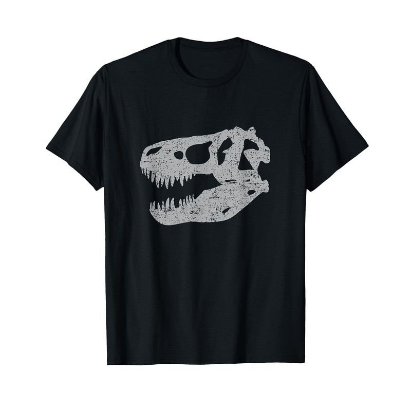 - T-Rex Skull T-Shirt Tyrannosaurus Rex Dinosaur Fossil Bones Tee. TShirt is the perfect gift for anyone into paleontology, archeology, museums, or prehistoric Jurassic animals. Add this scary T-Rex skull dino skeleton graphic tee to a Halloween costume.