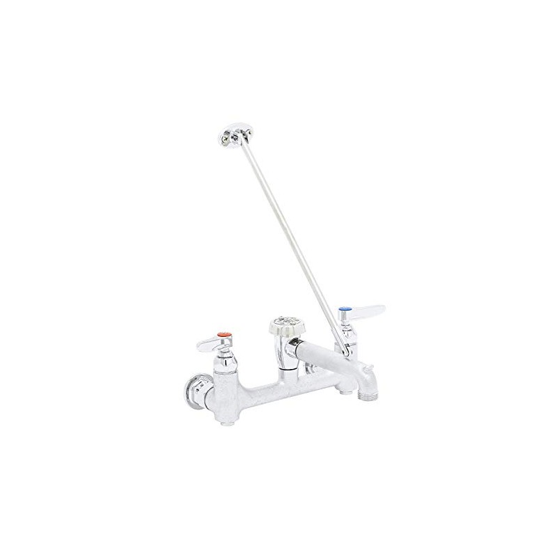 T&S Brass B-0665-BSTR Service Sink Faucet. 8" Wall Mount with Built in Stops, Vacuum Breaker, and Pail Hook. Rough Chrome with Garden Hose Male Outlet. (Pack of 1)