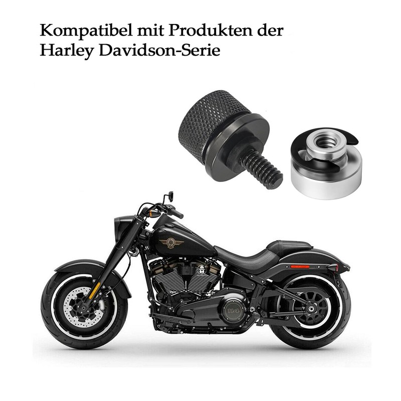 - Applicability: Quick release seat screw set compatible with Harley Davidson models from '97 XG, XL, Dyna, Softail (except FLS models '12-'17 with seat), touring and trike models with 1/4"-20 mounting material for the seat. Does not fit seats equipped with a spring-loaded rear seat holder.