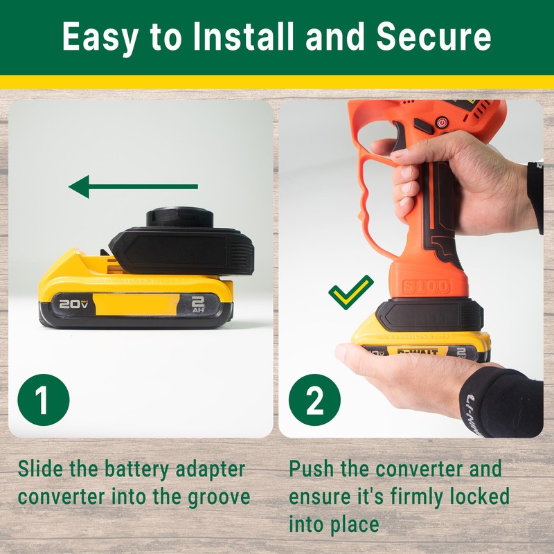 • 【Easy to Install and Secure】No complicated steps here! Simply slide the battery adapter converter into the groove, push the converter and ensure it's firmly locked into place. It has an anti-slip and anti-loosening design for added safety and reliability.