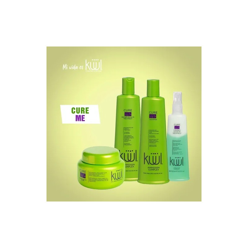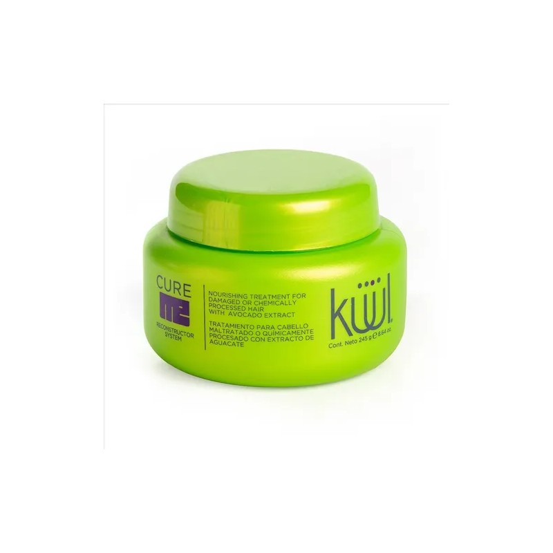 Tratamiento para cabello maltratado o químicamente procesado con extracto de aguacate. Kuul Cure Me Reconstructor System es un tratamiento compuesto por agentes proteínicos. Ideal para cabello reseco, maltratado y químicamente procesado por tinte o permanente. Enriquecido con extracto de aguacate, que permite generar acondicionamiento y humectación, contribuyendo a devolver naturalidad, fortaleza y brillo al cabello. Genera resultados a través de mezclas científicamente preparadas de aminoácidos que repara y humecta el cabello reseco y dañado.