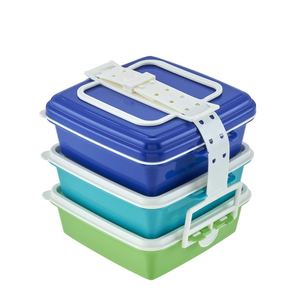 T-WORLD 4080 Stackable Picnic Case, Square Shape, 3 Tiers, Blue, S, Colors