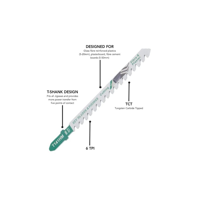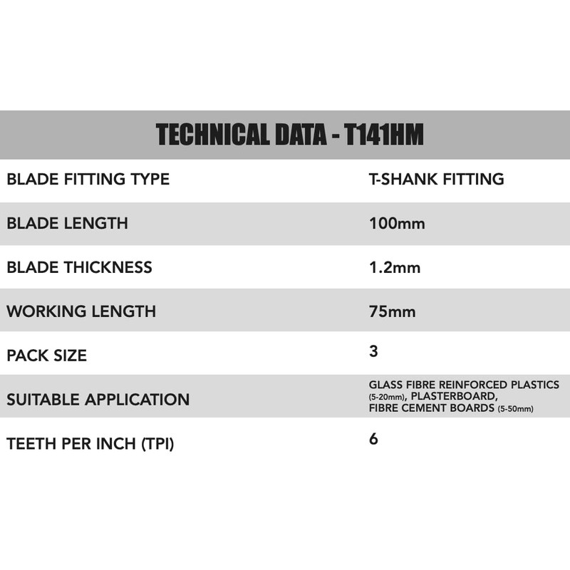 T141HM Jigsaw Blade Set 3pack, Jigsaw Blades tungsten carbide tipped jigsaw blades designed for cutting plasterboard, glass fibre reinforced plastic/epoxy 5mm to 20mm