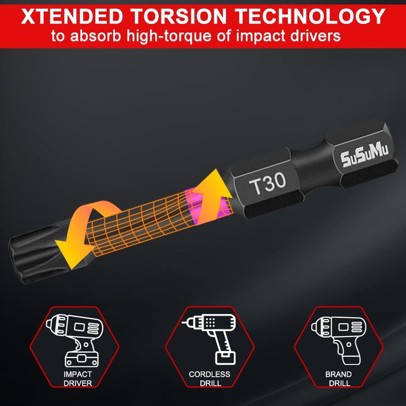- 🧲 🛠️【Impact Tough Bits】 Professional Grade Impact Ready 20Pieces 2inch #30 Torx Head. Impact Shock Absorbent Zone stands up to punishment from high-torque impact driver.Heat-treated bit manufacturing,Impact Tough Screwdriving Power Bits provides stronger bit,Precision head in processing , and lock the screw tightly, stable and not slip, work efficiency.