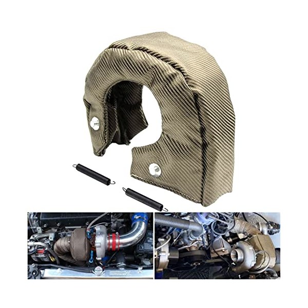 T6 Dual Titanium Inner and Outer Turbo Cover Blanket Turbocharger Heat Shield Cover Wrap Heat Shield Cover Fit for T5 T6 Turbo with Two Fastener Springs